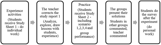 Experiments were conducted throughout the lesson to figure out how to solve the problem by setting up equations. In the experimental process, for grade 8A8, teachers taught situations that had been designed to develop problem-solving abilities and conducted traditional lessons for class 8A1. The empirical sequence of pedagogy is shown in Table 3.