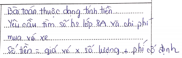 Fourth, it was demonstrated by the exercise, which resolved the equation that the evaluation capacity had been expanded. It was observed that the only way to know the value of x was to go on and look for the amount of the ticket. Additionally, not the best result was reached because car tickets were bought for 8000 VND when that sum was multiplied by 8 million VND to convert to the local currency, which produced a loss of 600000 VND.