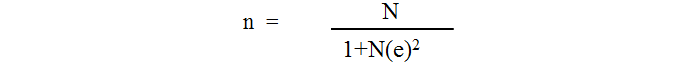 A sample is simply a subset of the research population. The concept of sample arises from the inability of researchers to test all the individuals in a given population. The population of the study area is Akure south local government area. There are several methods for determining the sample size. In this research, sample size was determined with Taro Yamane’s formula. This formula was used to determine the minimal sample size for a given population size. Prior to the determination of sample size a population projection was carried out using this formula: P1 = P0(1+2.8/100)n where P1 = the projected Population, P0 = Present Population, 2.8/100 = The United Nation Population Growth rate, n = number of years between the present and projected population = 9 (2006 – 2015) therefore P1 = 353,211(1+2.8/100)9 = 452,869. The formula for determining numbers of questionnaire or sample size is Taro Yamane’s Formula which is shown below:
