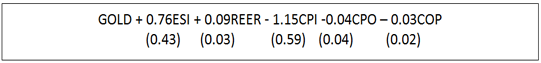Then based on the direction of Granger-causality above, how REER reacted by hit from the stock market? If the stock prices are on increase and stock returns are higher, it will attract more foreign capital and also local investors who will sell their asset abroad to make an opportunity gains in local market. This conversion will increase the demand of local currency and tend to increase its price. Nevertheless, the Kijang gold also received the impact from REER, as according to Ibrahim (2012) the Malaysian gold price may have depended on the global gold price, additionally, the use of gold price quoted domestically in ringgit give out potential confounding effect of exchange rate movement and currency conversion. In other word, it means that the global price of gold is set in USD and as the USD loses its value against gold, this will make the MYR loses its value against USD.