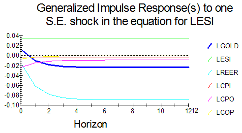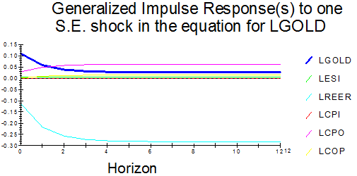 Figure-4. Generalized impulse response(s) to one SE shock in the equation for LGOLD
