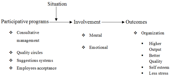 Figure 1 demonstrates that in a few conditions participation will unite mental and emotional involvement (Davis and Newstrom, 1997). Participation increases worker inspiration, on the grounds that the commitment toward corporate objectives is actualized. Job satisfaction and effective cooperation with the manager will advance, also, in light of the fact that workers are less worried, there is less conflict but rather more involvement to organization goals and, at last, organizational change is better accepted.