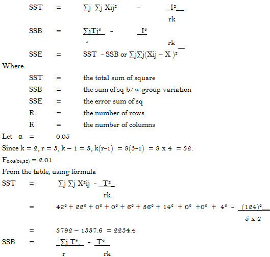 Reject Ho if F_ calculated > F0.05(4,32),, otherwise do not reject Ho. Since F – calculated = 21.56 > F0.05(4,32) = 2.01, we, therefore, reject Ho and concluded that the adoption of employee participation in decision making relates to employees motivation.