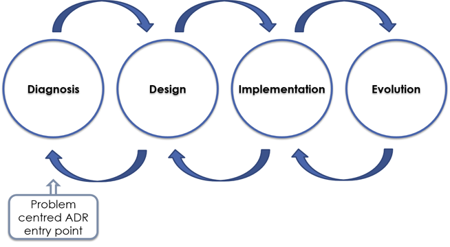 Within the four stages of the ADR process, each states the objective of that stage, and accommodates the creation of an artefact, its evaluation, reflection, and formalisation of learning (Mullarkey & Hevner, 2019). There are various entry stages to the process and since the research aims to develop a process model that can describe and guide the process of testing conformance of health information systems to the eHealth interoperability standards described in the HNSF, this study utilises a problem-centred ADR entry point as it initiates the research by considering the problem.