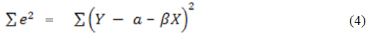 The aim of the Least square method is to choose the values of a, and β which minimize the sum of squared error terms e. Equation 2 can alternatively be expressed as: