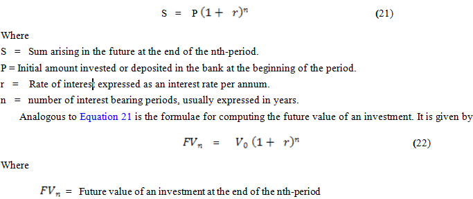 The concept of time value of money holds a very prominent position in finance and it forms the basis of major decisions such as; investment decision, dividend decision, capital structure decision etc. Since many financial decisions are made based on the present value of the future cash flows, future cash flows are converted to their approximate present values using appropriate discount factors. Specifically, the technique of discounting is always applied in project evaluations, bond pricing, dividend decisions, annuities etc. For those purposes, the basic discounting model is always given as a direct transformation of the future value formula given in equation 22. It is given by: