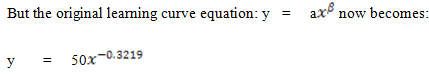 Equation 31 gives the learning curve model. Equation 31 is similar to equation 16 and its linear transformation is analogous to Equation 17. From the above model: