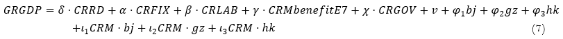 2. Stata order: regress grgdp crm crlab crrd crfix crgov bj gz hk c.crm#i.bj c.crm#i.gz c.crm#i.hk