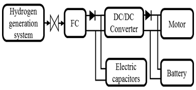Fig 6 shows the outline of the FCV system. The lead battery and the capacitors are used to compensate for electrical power at the time of starting or at the time of driving up a slope. Driving experiments are conducted in the parking of Fukuoka Institute of Technology. One lap of the driving course is about 105[m]. In the driving course, there is an easy slope of 30[m] with an angle less than 1[]. One liter of water was poured into the water tank.