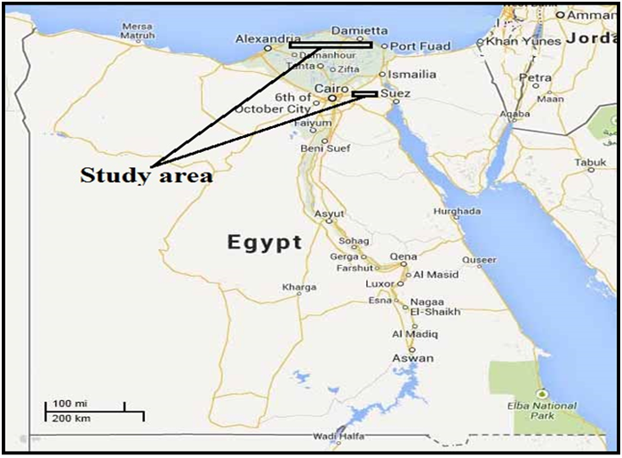 Fig-1. Map of the Nile Delta region showing different localities of the study area