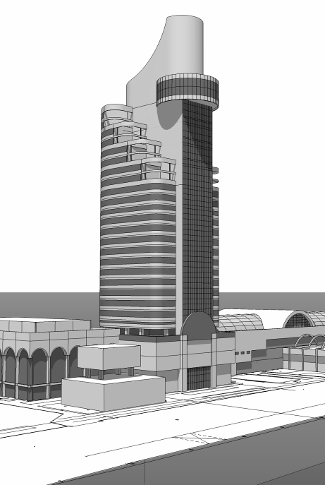The above-ground part of the main building of the previous SSC was 27 floors. As a result of the adjustment of the lower floors and the addition of the upper floors, the total number of floors above the ground has become 31 floors. The total height of the building is the same as before, and the absolute elevation of its highest point is still 132.1 meters. The height of the building is 124.6 meters. Since the increase in the number of floors, 4 passenger ladders originally located in the core tube of the main building could not meet the requirements for vertical transportation. By adjusting the core tube, passenger ladders were increased from 4 to 6. 1 freight elevator and fire elevator installed in the core tube of the main building was maintained and the elevating height of the elevator was increased according to the condition of reconstruction.