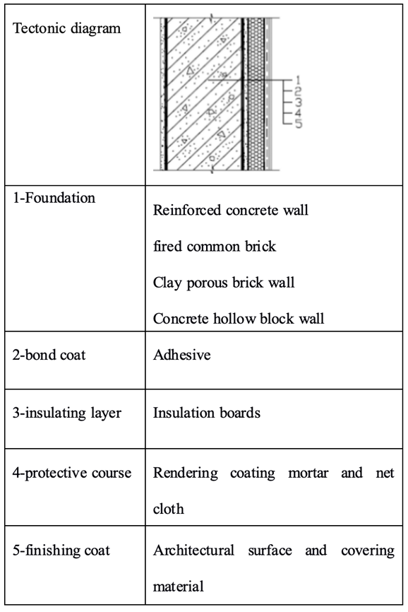 In terms of energy consumption, exterior walls account for about 24% of the total energy consumption of the exterior-protected construction. Therefore, it is very important to strengthen the thermal insulation of the exterior walls [16]. According to the characteristics of regional climate, the energy-saving reformation of exterior walls of existing buildings is mainly about heat insulation and sunshade. It can be measured in three ways: (1) Install external insulation for external walls; (2) Plant green plants such as creepers, grapes and morning glory; (3) Install insulation for the other side of exterior walls. This is not commonly used in practice since its defects such as temperature instability. So it is just a backup plan. Figure 8 demonstrates the structure of walls.