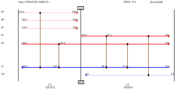 This 3-stream problem was first solved by Shenoy, et al. [2] it involved 3 levels of steam as hot utilities and 1 cold utility in form of cooling water as shown in Table 1.