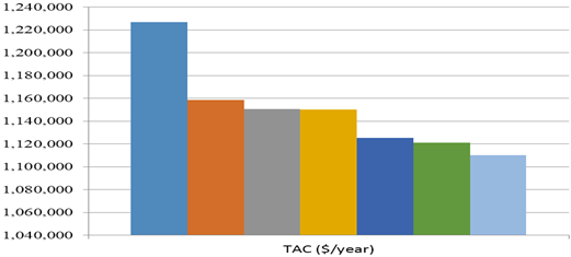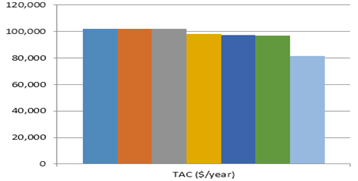 The 5-unit network designed in this research gave the lowest TAC of $81,410.70/year when compared with other solutions proposed by various researchers as seen in Table 2, while Figure 2 shows a graphical comparison of the TACs achieved by various networks. Further results for this study are shown in Appendix A.