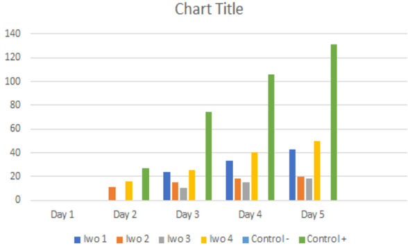 Figure-2. The growth of the fungi isolated from the Iwo samples measured in millimeters during pathogenicity test.