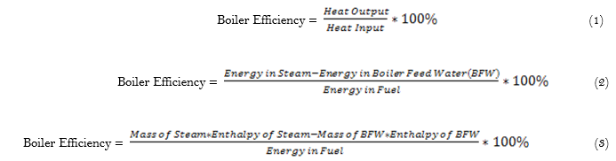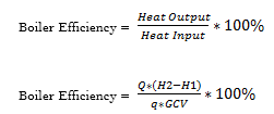 The thermal efficiency of a boiler can be calculated by the direct method (input-output method) or otherwise known as fuel-to-steam efficiency and it is given by: