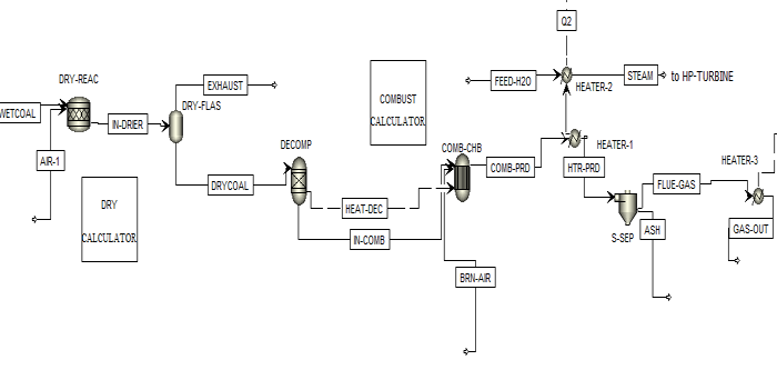 Figure-2. The flow sheet of Coal Combustion using Air.