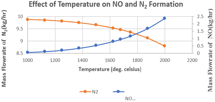 Figure-4. Effect of Temperature on NO and N2 Formation.