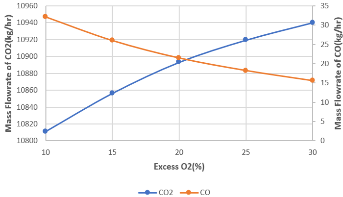 Figure-6. Effect of Excess O2 (%) on CO2 and CO Formation.