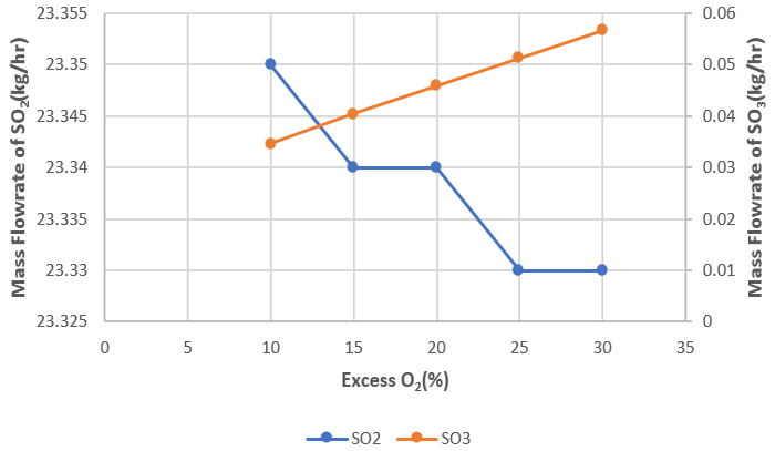 Figure-8. Effect of Excess O2 on SO2 and SO3 Formation.