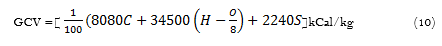 GCV can be estimated using Dulong’s formula: