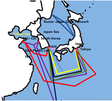 The locational benefit of South Korea had lesser shown in Figure 3 than Sri Lanka. South Korea covered only three sides of the sea. The world-famous cable system in South Korea was KDD Pacific Link. KDD Pacific link went through the Yellow sea that had clearly shown in Figure 3. This cable system had mainly connected to Japan. The Russia-Japan Cable system was the famous and profitable cable system in Japan.