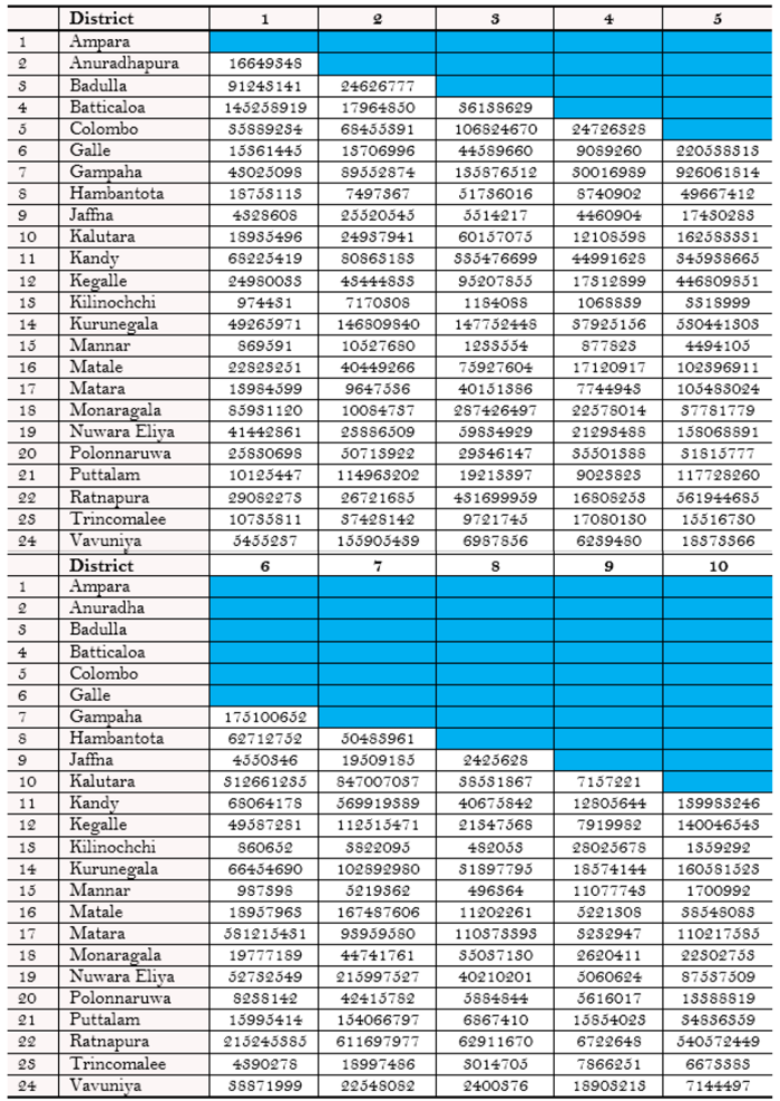 Table 3. Traffic flow table of Sri Lanka for some district.