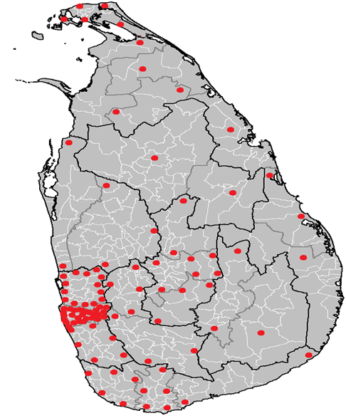 Figure 4 had obtained by using Table 3 and called the local plants model. Here we estimated the required exchanges by considering the population density. According to the calculations, about one hundred plants had required for this model. The highest number of local plants required was the Colombo district. It was twenty-eight. The lowest number of local plants required was Mannar. It was zero.