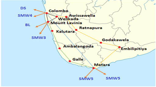 Sri Lanka Telecom has the following cable landing stations shown in Figure 10:
