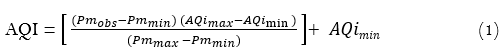 PMobs = Observed PM (PM2.5 or PM10) concentration in μg/m3