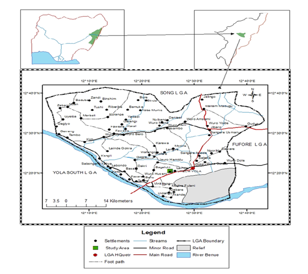 Figure 3 illustrates the map of Nigeria where green area is used to designate the map of Adamawa State. Also, in the map of Adamawa state, green map was used to designate Girei Local Government, which is the local government where Modibbo Adama University of Technology is situated.