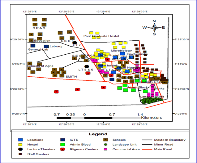 Figure 4 illustrates the map of MAUTECH showing places and departments present in the university.