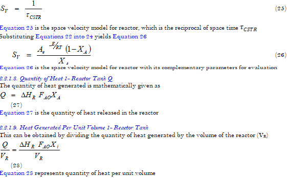 Figure 12 depicts the relationship between the heats generated per unit volume varying with conversion. Both reactions progressed from initial condition to a maximum point and starts decline to a steady state process, as the heat generated per unit volume reduces with increase in fractional conversion.