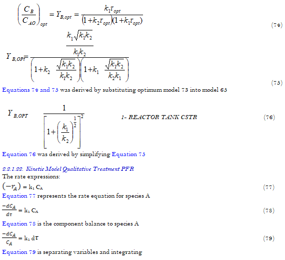 Yields for both reactors, optimum model for the PFR and CSTR are derived as follows: