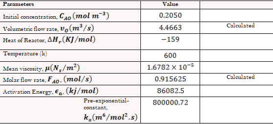 Schotborgh, et al. [4] worked on analysis of the multi tubular reactor for Formaldehyde production by one-dimensional models. The oxidation of methanol in a packed bed catalytic reactor was studied and steady state models for the temperature and mass (mole) were derived using principles of conservation of mass and energy. The developed models were solved using 4th-order Runge-Kutta Algorithm and profiles of temperature and moles fraction. The kinetic expressions followed that of Cozzolino, et al. [5] and Tesser, et al. [6]. The results indicate that Tesser, et al. [6] kinetic expression was satisfactory and gives a good description of the system than others.