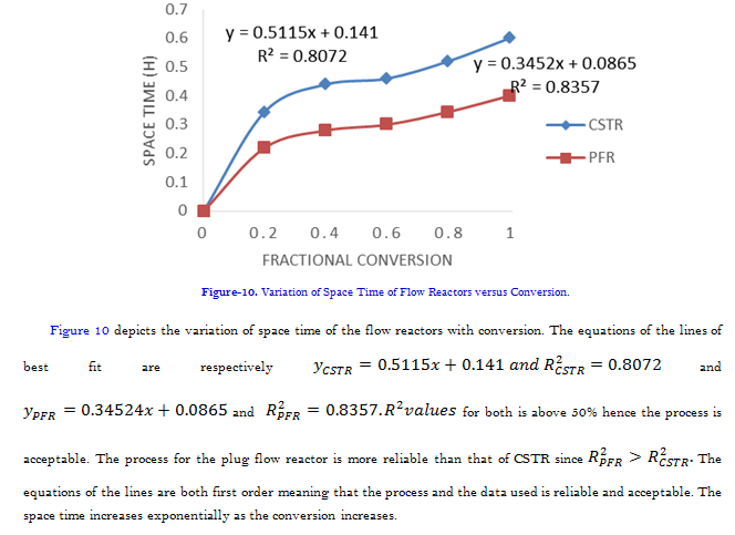 Figure 9 shows the variation of the length of the flow reactors with conversion. The equations of the lines of