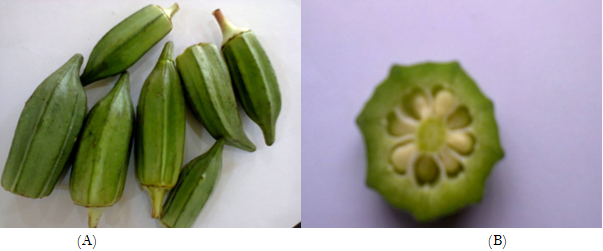 Figure-1. (A) Shows freshly obtained okra and (B) sliced okra ready for drying.