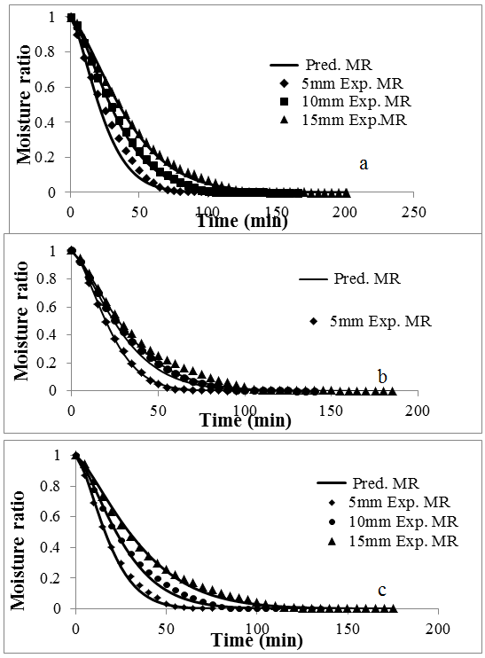 Also, Equation 1 is the experimental moisture ratio, (MRexp) while Equations 3-5 are the predicted moisture ratios (MRpre) from the models