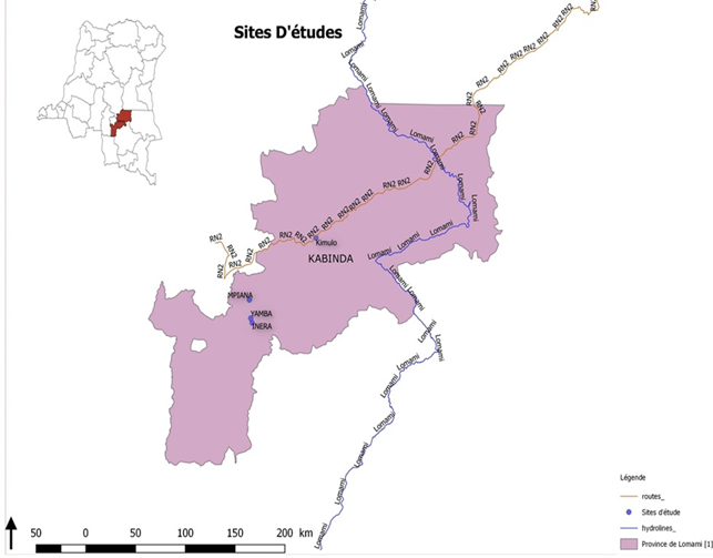 The organic matter content is low and the nutrient macros such as nitrogen and phosphorus are limited in some places. The results of soil analysis in Ngandajika area by Muyayabantu, et al. [27] confirms this observation.Trials were conducted at three different sites Figure 1 one controlled and two peasant sites. The controlled environment is located at the Station of the National Institute for Agricultural Research and Research (INERA) of Ngandajika which has been used for experiments.In peasant environment it is the village of Mpiana and the village of Yamba Figure 1. These are areas of older agricultural exploitation, more advanced in the process of artificialization of the natural environment by deforestation, erosions, significant parasite pressure. The selection of these sites is linked to the proximity of the agricultural research center, the nucleus of agricultural innovation in the region. The accessibility of farmers from two villages to the research station was considered necessary to facilitate interactions between farmers and researchers during the experimental phase.