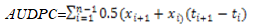 The disease severities recorded at different time were utilized for the calculation of AUDPC for each cultivar using the formula below [25, 26]: