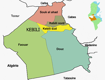The governorate of Kebili was newly created in September 1981. It is located in the south-west of the country, at the Algerian-Tunisian border, and covers an area of 22,454 km2, or 13.5% of the country’s area. Administratively, Kebili governorate is divided into six delegations: North Kebili, South Kebili, North Douz, South Douz, Fawar and Souk Lahad Figure 1.