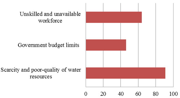 According to rural pollution, this decline of reforestation can be explained by constraints due to scarcity and poor-quality of water resources (91% of respondents), to government budget limits (46%) and to unskilled and unavailable workforce (64% of respondents) Figure 4.