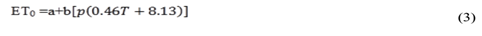 ETo calculated by applying Hargreaves ETo equation suggested by Hargreaves and Samani [12] is given as