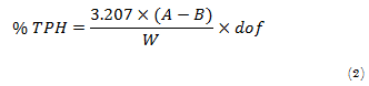The widely accepted gravimetric quinolinium phosphomolybdate methodology was adopted for the determination of the percentage total phosphate (TPH) [33]. This method is simple, possesses acceptable accuracy, and enhances minimal ions interference [34]. One gram of individual sample was mixed with magnesium nitrate solution in an evaporation dish. Heat treatment was introduced to destroy the constituent organic matter and thereafter dissolved in 10 ml HCl. The resulting mixture was cooled to room temperature, diluted to 250 ml, and then reacted with a quimociac reagent in a boiling medium. The corresponding orthophosphate precipitates as quinolinium phosphomolybdate, which was then weighed gravimetrically [31]. The exact percentage of total phosphate can be determined using Equation 2 [34].