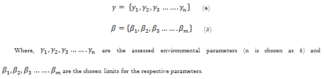 This entails the identification and adoption of suitable environmental parameters that effectively represent the system to be studied as well as selecting the range of criteria limits for the respective parameters based on relevant regulatory standards Table 2. Equations 4 and 5 depict the set of functions that defined these variables: