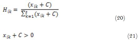 Furthermore, when the measured parameters have excessive zero values, Zhu, et al. [46] opined that the standardized process, Equation 18, is prone to distortion, leading to the assignment of high weight index to these sets of parameters with the least dispersion degree of measured data. The authors further asserted that this anomaly can be corrected using Equations 20 – 21.