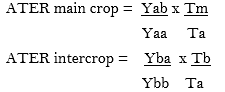 Area time equivalent ratio (ATER) = (ATER main crop + ATER intercrop)
