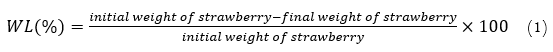 According to Equation 1, strawberry fruits' weight loss percentage (WL) was determined [15]: