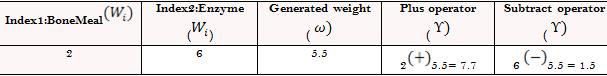 The mutation points are at the locations which corresponds to BoneMeal and Enzyme. Based on the calculations in Table 7, the values at these points changes to 7.7 and 1.5 respectively. The result is presented in Table 8.