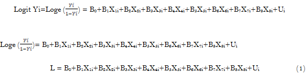 The Logit model was estimated by using binary dependent variable where the value 1 was assigned for the producers willing to adopt Bt-brinjal and 0 otherwise. The Logit model has been specified as follows: